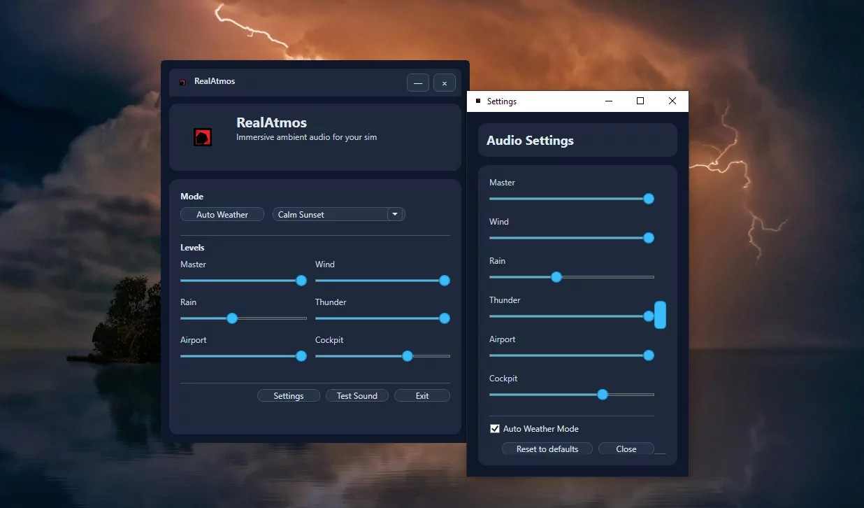 Программа ealAtmos Immersive Audio Pro обеспечивает высококачественное воспроизведение окружающего звука, который динамически адаптируется к условиям полета в Microsoft Flight Simulator. Разработанная командой увлеченных студентов-программистов и энтузиастов авиасимуляторов, программа RealAtmos обеспечивает многослойное воспроизведение звука профессионального уровня на каждом этапе полета.