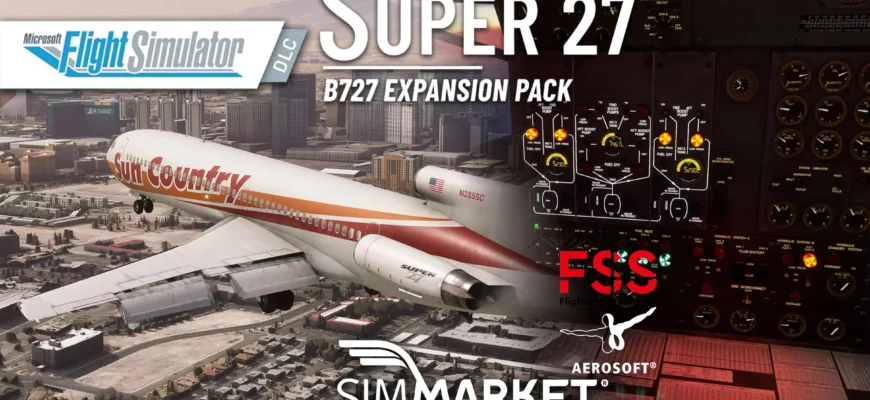 Дополнение Super 27 дополняет Boeing 727 модернизированными двигателями, авионикой и функциями кабины пилотов. Это дополнение, основанное на существующей версии 727-200-й серий от FlightSim Studio, привносит в Microsoft Flight Simulator больше мощности, новые звуки и усовершенствованные авиационные системы.