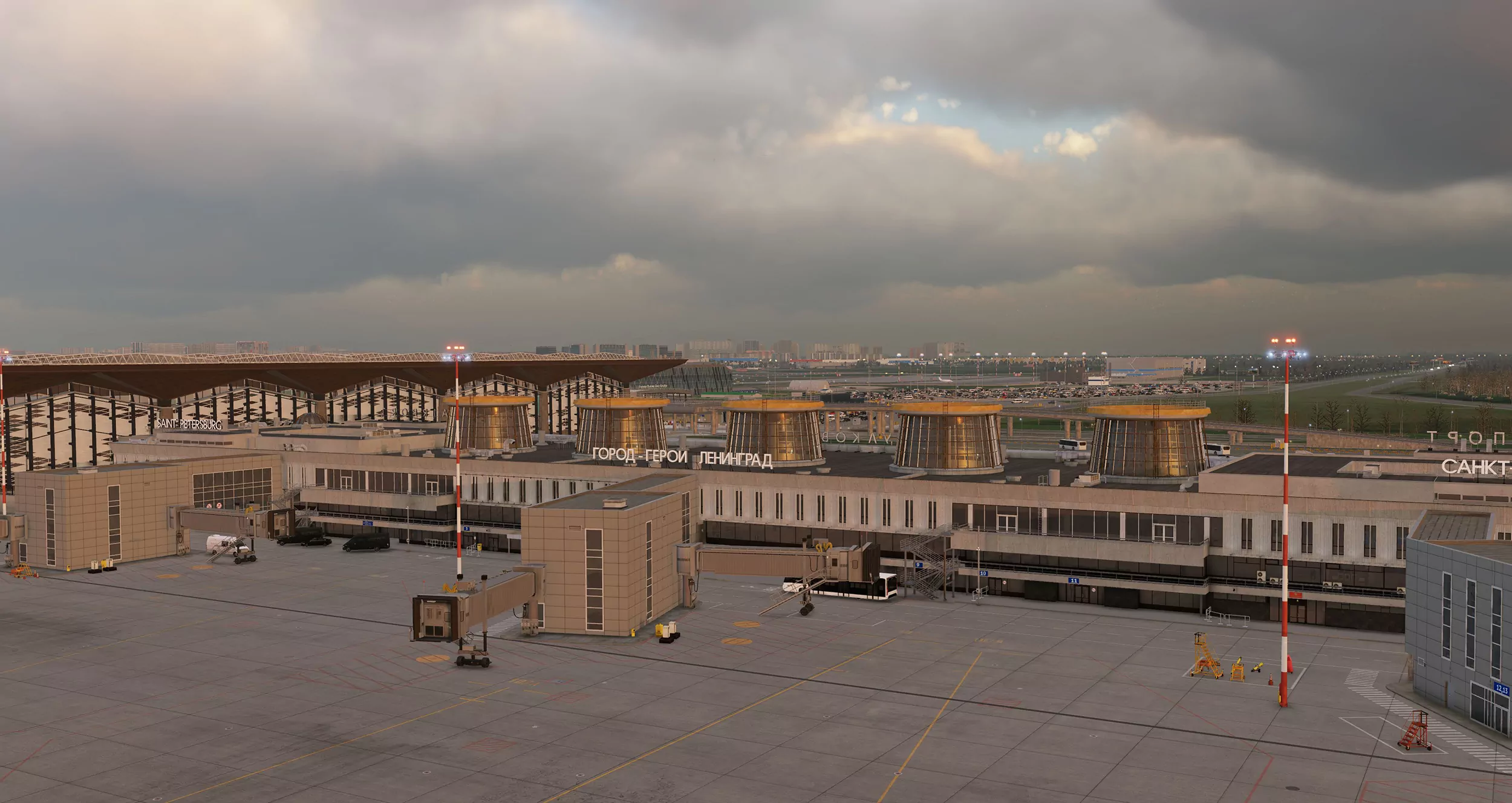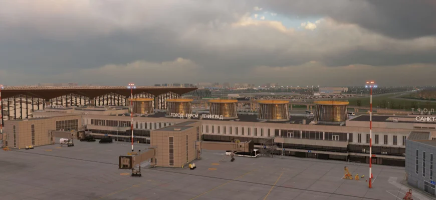 Аэропорт Пулково (IATA: LED, ICAO: ULLI) — международный аэропорт, обслуживающий Санкт-Петербург. Он состоит из одного терминала, расположенного в 23 км (около 14 миль) к югу от центра города. Знаменитый 5-этажный терминал Пулково-1 был спроектирован Александром Зыком. 5 верхних этажей были установлены намеренно, чтобы придать терминалу ощущение простора и обеспечить более естественное проникновение солнечного света. Этот терминал считается шедевром советской архитектуры в стиле постмодернизма. По итогам 2023 года пассажиропоток Пулково составил более 20,4 млн человек.